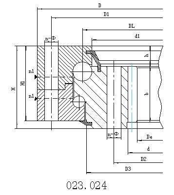 雙排球式回轉(zhuǎn)支承具有三個(gè)座圈,鋼 球和隔離塊可直接排入上下滾道,根據(jù)受力狀況,安排了上下兩排直徑不同的鋼球。這種開(kāi)式裝配非常方便,上下圓弧滾道的承載角都為90°,能承受很大的軸向 力和傾翻力矩。當(dāng)徑向力大于0.1倍的軸向力時(shí)滾道須特殊設(shè)計(jì)。雙排球式回轉(zhuǎn)支承的軸向、徑向尺寸都比較大,結(jié)構(gòu)緊固。特別適用于要求中等以上直徑的塔式 起重機(jī),汽車(chē)起重機(jī)等裝卸機(jī)械上。