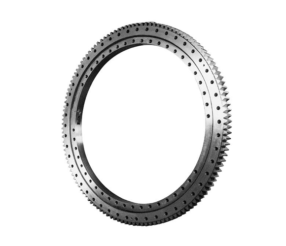 單排四點接觸球式回轉(zhuǎn)支承由兩個座圈組成,結(jié)構(gòu)緊湊、重量輕、鋼球與圓弧滾道四點接觸,能同時承受軸向力、徑向力和傾翻力矩?;剞D(zhuǎn)式輸送機、焊接操作機、中小型起重機和挖掘機等工程機械均可選用。